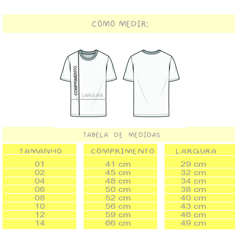 Lavagem Fácil e Cores Vivas: Todas as nossas peças suportam diversas lavagens sem perder a forma ou a cor, facilitando a rotina dos pais e mantendo a camiseta sempre impecável.